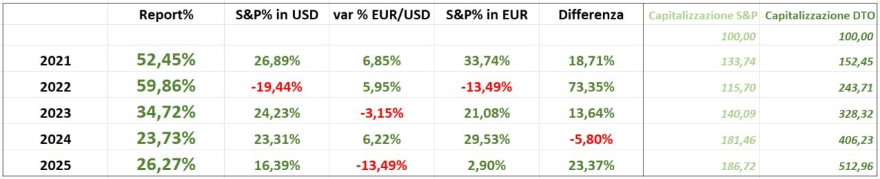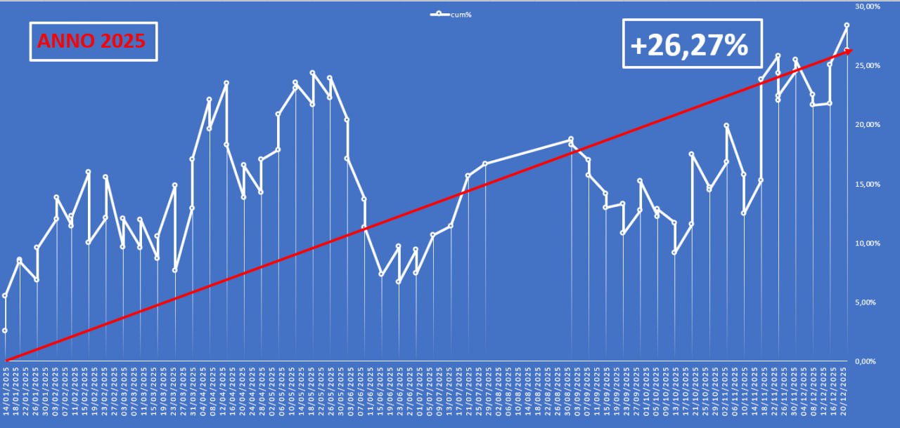 Clicca sul grafico di seguito per visualizzare la Equity Line 2025 nella prima immagine e i risultati degli ultimi 5 anni nella seconda immagine del PLAN D.T.O.